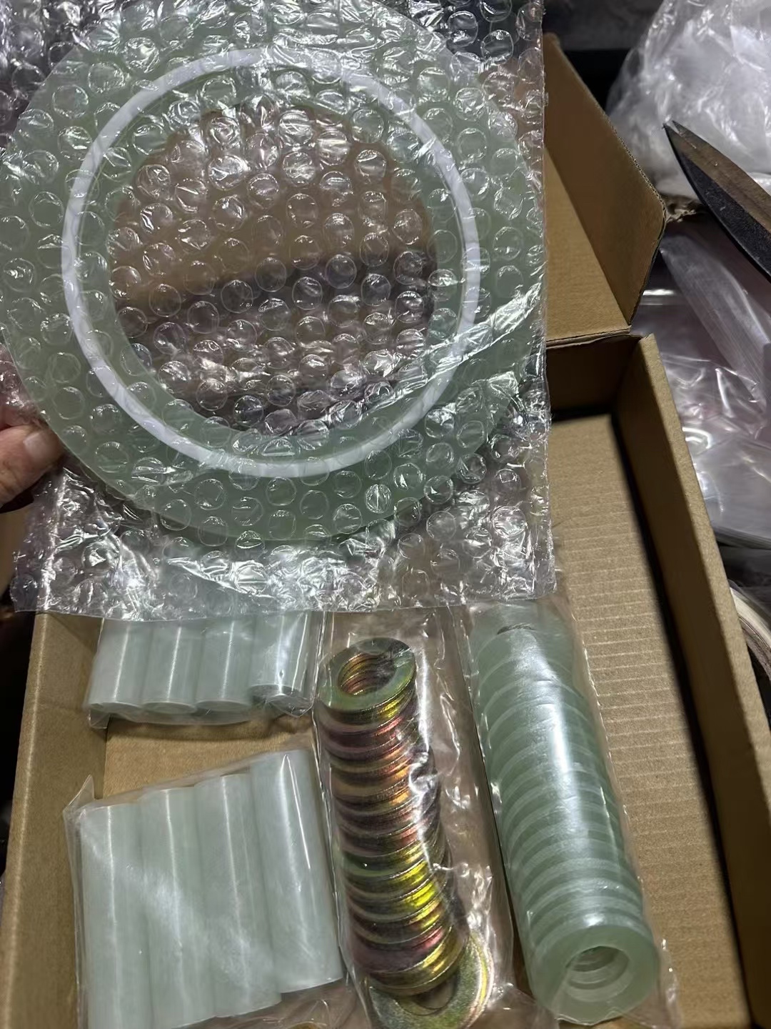 Phenolic laminate, epoxy fiberglass board, PTFE, neoprene rubber, oil-resistant asbestos, modified PTFE, etc.